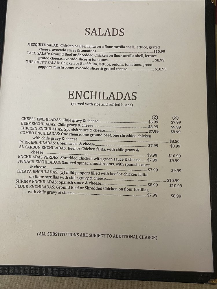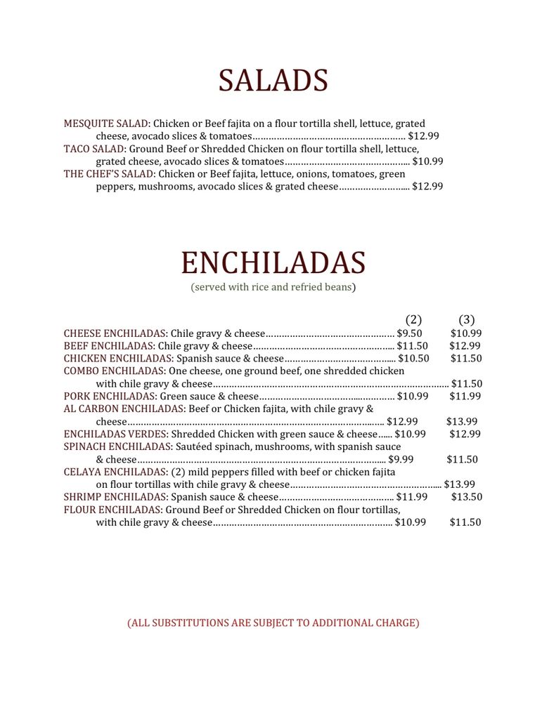 () Cheese enchiladas topped with chile gravy. Served with beef or chicken fajita slice, rice, and beans.