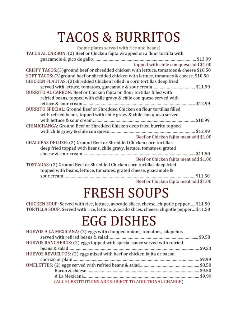 () Bell pepper stuffed and filled with ground beef or ranchero chicken then covered with special sauce. Served with rice, beans, guacamole, and tortillas.